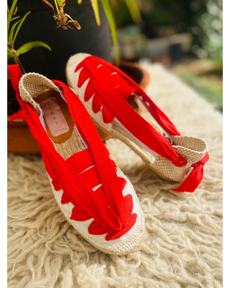 Pala en loneta de algodón, talonera natural y vetas de espiga en distintos colores que aportan estilo y frescura. Su sistema elástico permite calzarlas fácilmente sin necesidad de atarlas al tobillo.